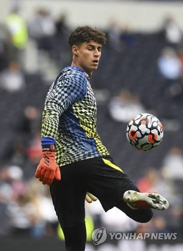 epa09476464 Chelsea's goalkeeper Kepa Arrizabalaga warms up for the English Premier League soccer match between Tottenham Hotspur and Chelsea FC in London, Britain, 19 September 2021. EPA/Neil Hall EDITORIAL USE ONLY. No use with unauthorized audio, video, data, fixture lists, club/league logos or 'live' services. Online in-match use limited to 120 images, no video emulation. No use in betting, games or single club/league/player publications