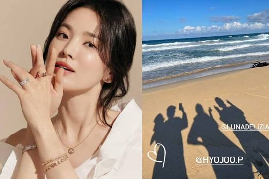 19일 송혜교는 자신의 인스타그램 스토리에 해변에서 찍은 사진을 게재했다.