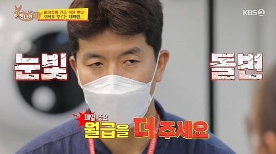 김병현이 월급을 올려달라고 요구하는 직원에게 좀비 눈빛을 발동시켜 MC들을 놀라게 했다.