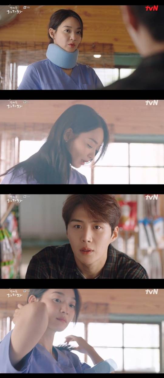 9월 19일 방송된 tvN 토일드라마 '갯마을 차차차' 8회(극본 신하은/연출 유제원)에서 홍두식(김선호 분)은 윤혜진(신민아 분)의 머리 묶는 모습에 심쿵 했다.