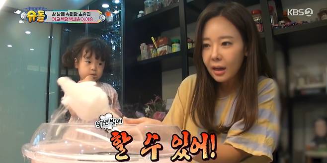 집에서 수제 솜사탕을 만드는 소유진. 자두 맛을 만드는 소유진의 옆에 온 세은이는 '솜사탕' 노래를 부르며 신이 난 모습을 보여 애교가 폭발한 모습을 보였다. 그러나 솜사탕이 계속해서 날아가며 이상한 모양이 되자 소유진은 "할아버지처럼 수염이 됐다"라며 당황했다. 그러다 "할 수 있어"라며 97년도에 발매된 노래를 부르자 박솔미는 "옛날 사람이다"라고 해 웃음을 자아냈다.