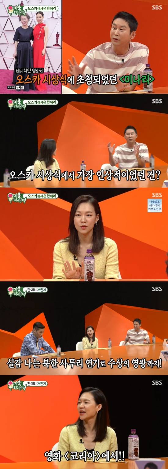 19일 방송된 SBS '미운 우리 새끼'에서는 한예리가 게스트로 출연한 가운데 윤여정에 대한 존경심을 표한 장면이 전파를 탔다.
