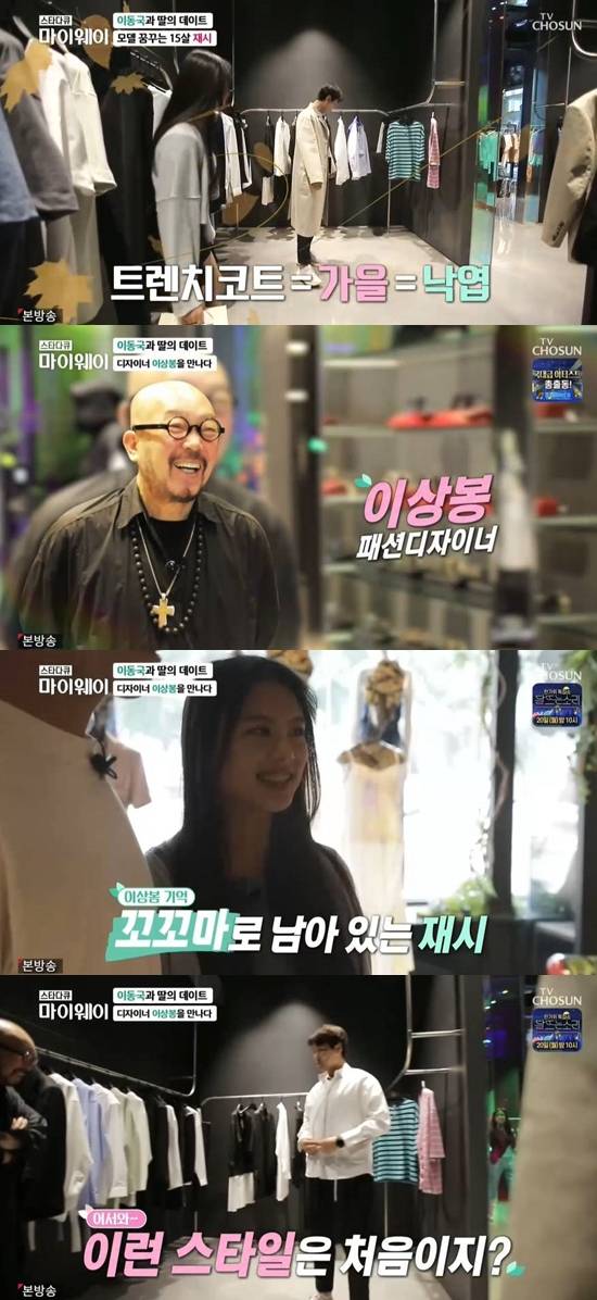 이날 이동국은 큰 딸 재시와 함께 패션디자이너 이상봉과 만났다. 이상봉의 숍에서 재시와 이동국은 선글라스도 써보고, 옷도 걸쳐보며 오랜만의 데이트를 즐겼다.