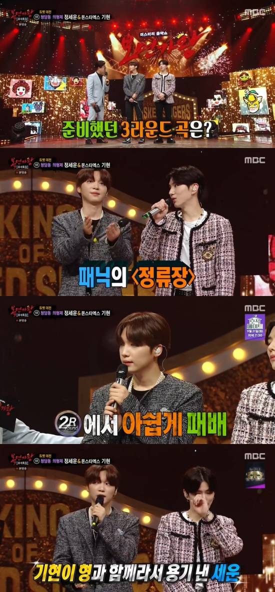 또 김성주는 "두 달 전쯤 세운 씨가 '복면가왕'에 나와서 가왕 목전에서 안타깝게 떨어지는 바람에 이번에 몬스타엑스 기현 씨하고 우승에 도전했는데 아쉽게 됐다"라며 아쉬워했다.