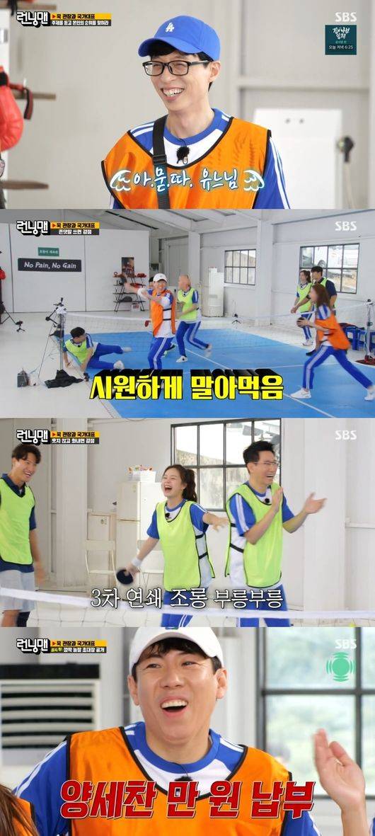 첫 번째 대회에서 승리한 건 김종국 팀이었다. 이영지, 양세찬, 전소민, 송지효는 각자 20만 원을 받고 김종국에게 자율적으로 회비를 납부했다. 4명이 낸 회비의 합은 총 6만원이었고, 송지효가 3만원을 내 웃음을 자아냈다.