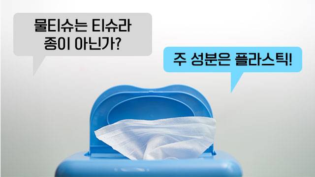 "물티슈가 '티슈'라고 해서 펄프로 생각하는데, 플라스틱이라 녹지 않습니다. 이름에 티슈라고 쓰면 안 될 것 같아요."