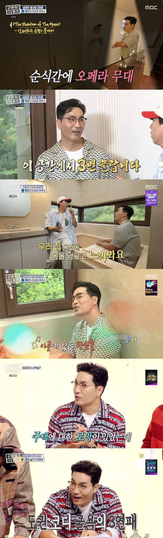 2층에 올라간 하도권은 오페라 하우스를 연상케 하는 풍경에 노래를 하기 시작해 웃음을 자아냈다. 2층의 방에는 파우더룸에 가벽 너머의 드레스룸, 편백나무 욕조가 있는 욕실이 있어 눈길을 사로 잡았다. 욕조의 천장도 유리로 돼 있어 더욱 분위기를 살렸다.