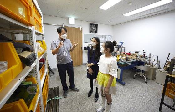 한켠에는 해금의 재료들이 다 분해되어 있었는데요. “악기를 만들 때 어떤 단계를 거치나요?” 김나윤 학생기자가 질문했습니다. “아주 간단하게 말하면 대나무 뿌리 부분을 가공해서 울림통을 만들고요. 외부를 까맣게 칠합니다. 줄을 얹는 입죽을 대나무로 만들어 꽂고, 이음새는 감잡이로 고정해요. 몸체에 명주실 재질의 줄을 걸고, 나무 활대에 말총을 매어 활로 쓰죠.” 악기연구소의 발자취와 측정 도구들도 볼 수 있었습니다. “저희가 제작했거나 복원했던 악기들을 전시해 둔 상태인데, 지금 아쟁을 연구하고 있어요.” 악기를 연구하기 위해 필요한 도구나 간단한 시제품을 제작하고, 녹음된 데이터를 분석하고 측정하는 작업도 하는 등 다양한 일을 하는 곳이었습니다.