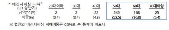 50대 이상 장년층을 중심으로 메신저피싱 피해가 크게 증가하고 있어 피해 예방에 각별한 유의가 필요하다.