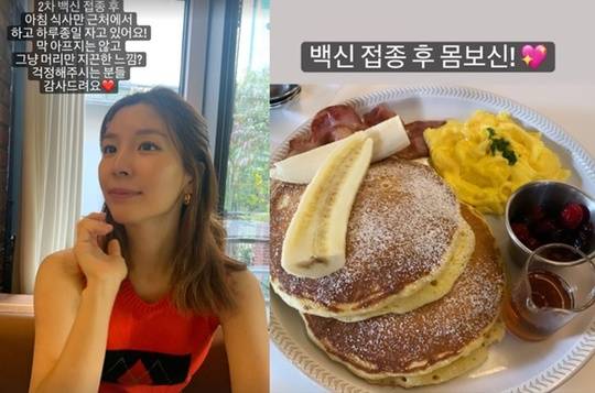 또한 함연지는 팬케이크와 오믈렛, 베이컨 등이 담긴 접시를 공개하며 "백신 접종 후 몸보신!"이라고 남다른 보양식을 자랑해 눈길을 끌었다.