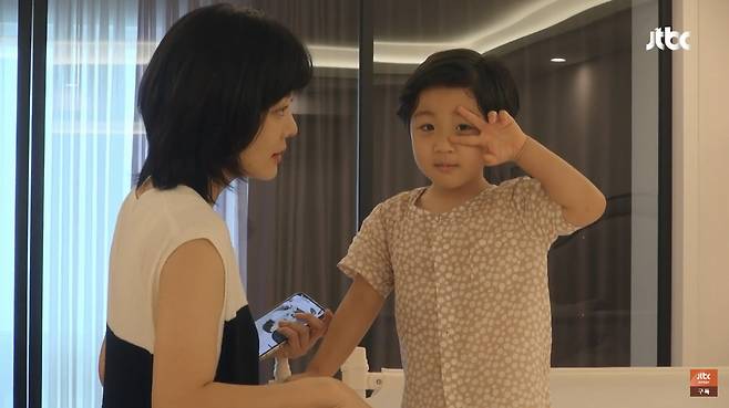 많은 이들의 기대를 모았던 ‘엄마 채림’의 모습도 살짝 공개됐다. 데뷔 후 최초로 공개된 채림의 집은 깔끔하면서도 민우 맞춤형 육아템들로 꾸며져 모두의 관심이 초집중 됐다. 또 민우가 원한다면 무엇이든 만들어 줄 수 있는 각종 육아 장비 창고부터 과학에 관심 많은 민우를 위한 다양한 맞춤형 놀이 공부법까지 공개돼 엄마 출연자들을 놀라게 했다.(사진=JTBC)