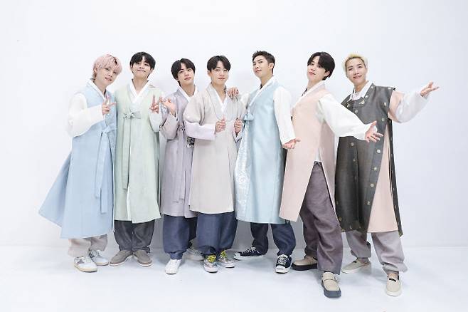 방탄소년단은 19일 공식 SNS에 한복을 입고 촬영한 추석 인사 영상을 게재했다.