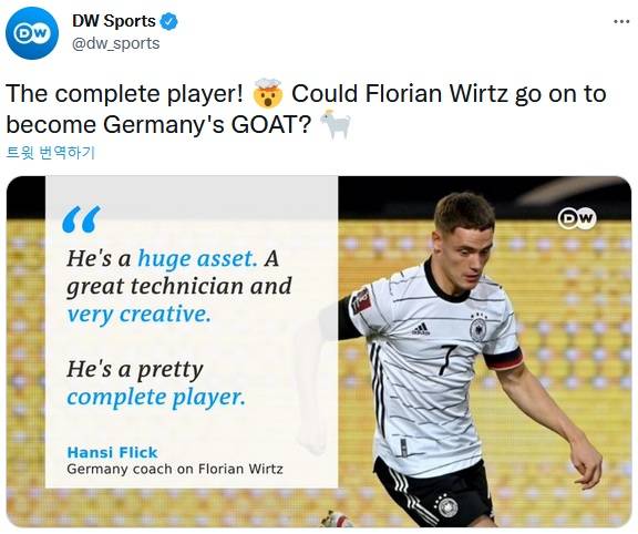 한지 플릭 독일 대표팀 감독 "비르츠는 엄청난 자산이다. 그는 위대한 테크니션이자 매우 창의적이다. 그는 상당히 완벽에 가까운 선수이다.