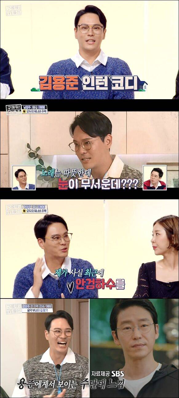 김용준은 경기도 남양주 화도읍의 한 주택을 둘러보던 중, 주방에서 SG워너비의 노래 한 소절을 불렀다. 이를 VCR로 지켜 본 MC 붐은 "노래는 따뜻한데, 눈이 좀 무섭다"고 말했다. 이에 김용준은 "제가 최근에 안검하수를 해서, 눈이 약간 좀 부담스럽다"라고 솔직하게 털어놨다. "그래서 좀 어색해 보였다"는 말에 김용준은 "눈을 정리 한 번 했다"라고 덧붙이기도 했다.
