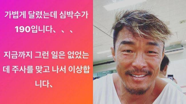 이종 격투기 선수 추성훈이 코로나19 백신 접종 후 이상 반응을 호소했다.