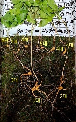 20일 한국전통심마니협회에 따르면 함양에 사는 약초꾼 황모(67) 씨가 지난 15일 휴천면 지리산 자락을 산행하던 중 5대를 이은 가족 천종산삼 9뿌리를 발견해 감정을 의뢰했다. 경남 함양 지리산에서 발견된 5대 가족 천종산삼. 2021.9.20 [한국전통심마니협회 제공. 재판매 및 DB 금지]