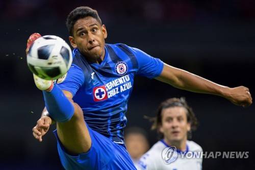 epaselect epa09477391 Luis Romo of Cruz Azul controls the ball during the Liga MX 2021 Apertura Tournament soccer match between Cruz Azul and Queretaro at the Azteca Stadium in Mexico City, Mexico, 19 September 2021. EPA/Carlos Ramirez