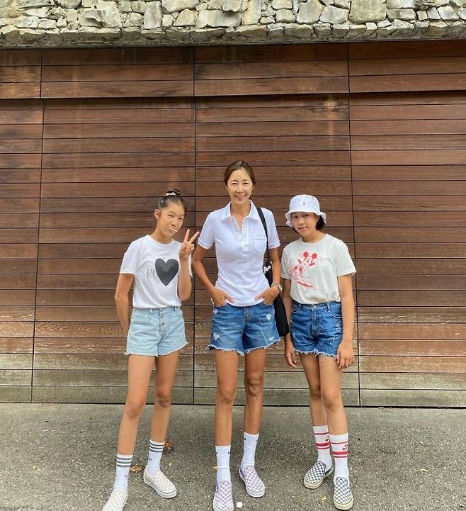 전 국가대표 테니스 선수이자 가수 윤종신 아내 전미라가 두 딸과 함께 우월한 다리 길이를 뽐냈다.