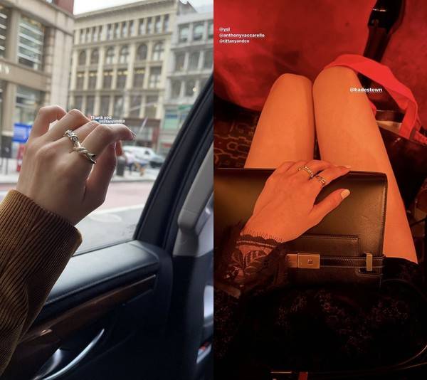 티파니앤코(Tiffany & Co.) 글로벌 엠버서더 로제가 양손 검지에 착용한 반지 링은 식스틴 스톤 링으로 'Tiffany&Co. Schlumberger' 라인 제품으로 플래티늄에 라운드 다이아몬드가 세팅된 18k 골드 링(총 1.14캐럿) 16,150,000원 이며 다른 하나는 더블 로우 링(Double Row Ring)으로 'Tiffany Knot' 라인 제품으로 라운드 다이아몬드가 세팅된 18k 골드 링(총 0.31캐럿)이며 $5,200달러 이다.