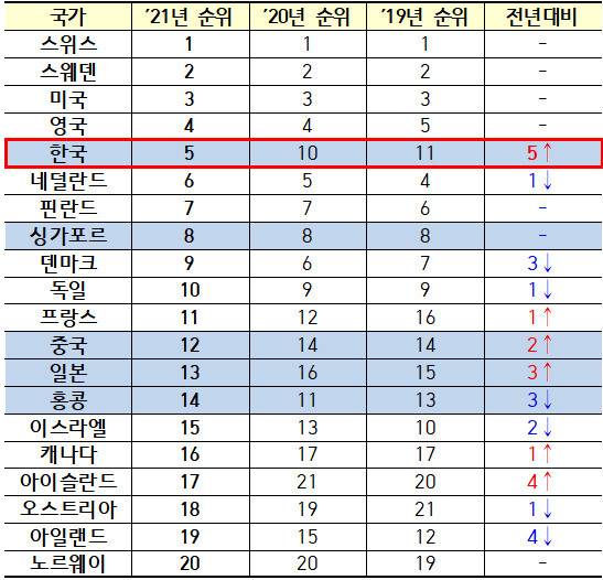 한국, '글로벌 혁신지수' 세계 5위·아시아 1위..5계단 상승