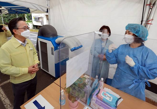 [서울=뉴시스] 고승민 기자 = 서울 금천구는 20일 유성훈 구청장이 추석을 맞아 코로나19 의료진과 현장근무 직원들을 격려했다고 밝혔다. (사진=금천구 제공) 2021.09.20. photo@newsis.com *재판매 및 DB 금지