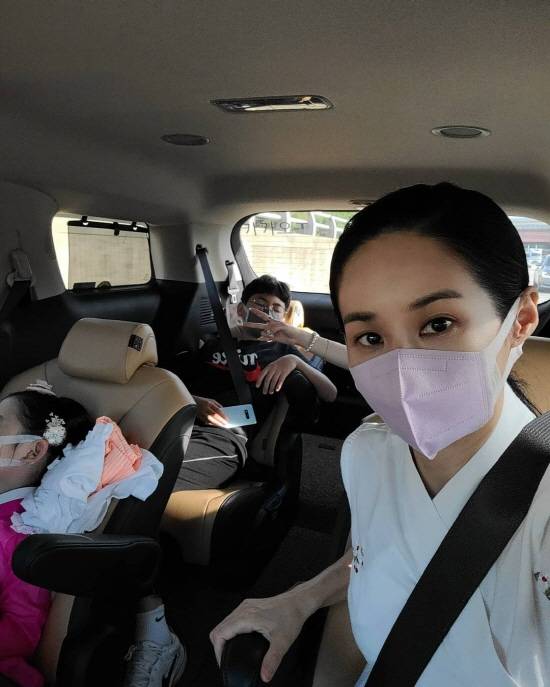 사진에는 김가연, 임요환과 두 딸이 차 안에 있는 모습이 담겨 있다.