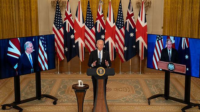 미 행정부 고위 당국자는 전화 브리핑에서 한국 같은 나라는 왜 호주와 같은 자격을 얻지 못하느냐는 질문에 "우리는 이것(핵잠수함 기술지원)을 다른 나라로 확대할 의도가 없다"고 답했습니다.