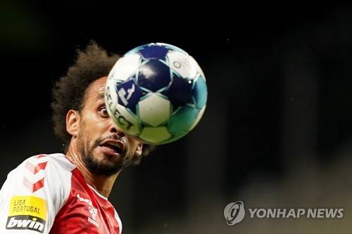 epaselect epa09478447 SC Braga's Fabio Martins eyes the ball during the Portuguese First League soccer match between SC Braga and Tondela at Municipal de Braga stadium in Braga, Portugal, 20 September 2021. EPA/HUGO DELGADO