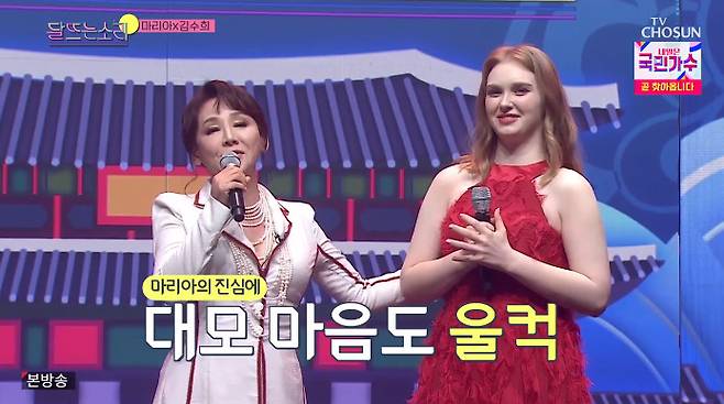 이에 김수희는 마리아가 너무 예쁘고 기특하다며 "대견하고 사랑스러워서 눈물이 났다. 무대에서 감정을 추스르질 못해 음이 떨어진 걸 처음 느꼈다"라고 고백했다.
