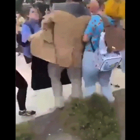 목격자가 공개한 영상에는 한 여학생이 팻말을 든 남성의 짐을 뺏은 뒤 주먹으로 그의 얼굴을 때려 땅에 쓰러뜨리는 모습이 담겼습니다.