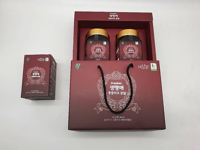 '생명애 동충하초 분말'은 고소애를 자양분으로 자란 기능성버섯을 분말화한 제품이다. 신체 발달과 면역력 증진에 효과적인 것으로 알려져 있다.
