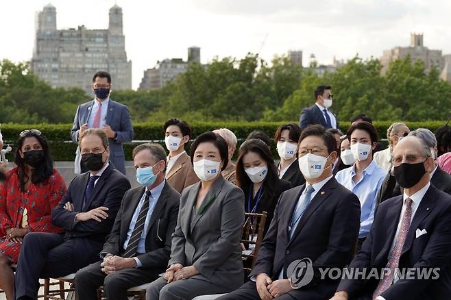 (뉴욕=연합뉴스) 최재구 기자 = 문재인 대통령과 UN총회 참석차 뉴욕을 방문한 김정숙 여사가 20일(현지시각) 메트로폴리탄 미술관을 방문하고 있다. 2021.9.21