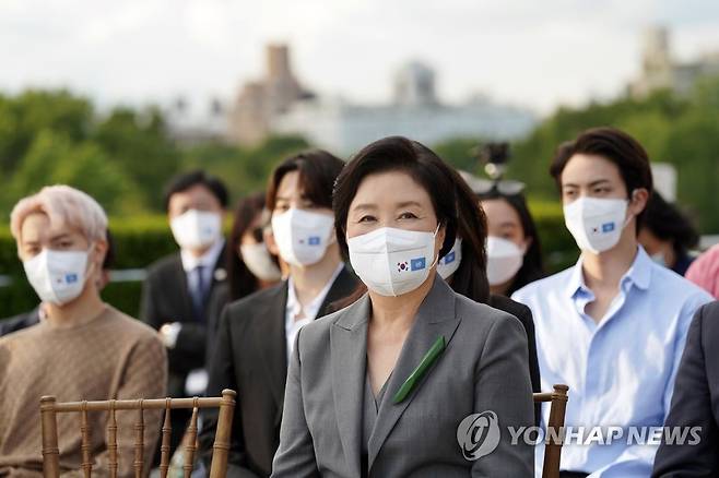 (뉴욕=연합뉴스) 최재구 기자 = 문재인 대통령과 UN총회 참석차 뉴욕을 방문한 김정숙 여사가 20일(현지시각) 메트로폴리탄 미술관을 방문하고 있다. 2021.9.21