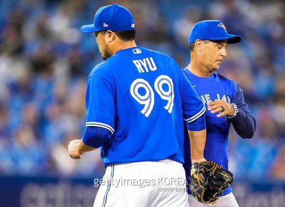 류현진은 캐치볼로 재정비 시동을 걸었다. 몬토요 감독은 "류현진이 던지는 것을 지켜보자"라고 했다.