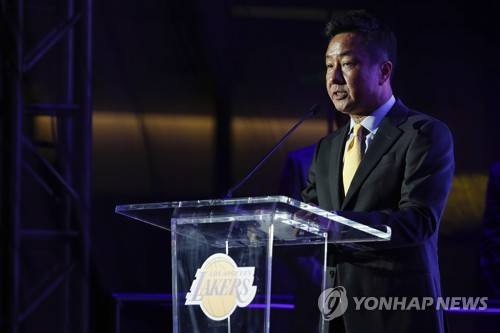 epa09478626 Wookho Kyeong, CMO of CJ CheilJedang, speaks during an announcement introducing the Los Angeles Lakers new corporate sponsorship with Bibigo, a Korean cuisine brand, at an event at the UCLA Health Training Center in El Segundo, California, USA, 20 September 2021. The Bibigo logo will be displayed on the 2021-2022 Los Angeles Lakers uniforms. EPA/CAROLINE BREHMAN