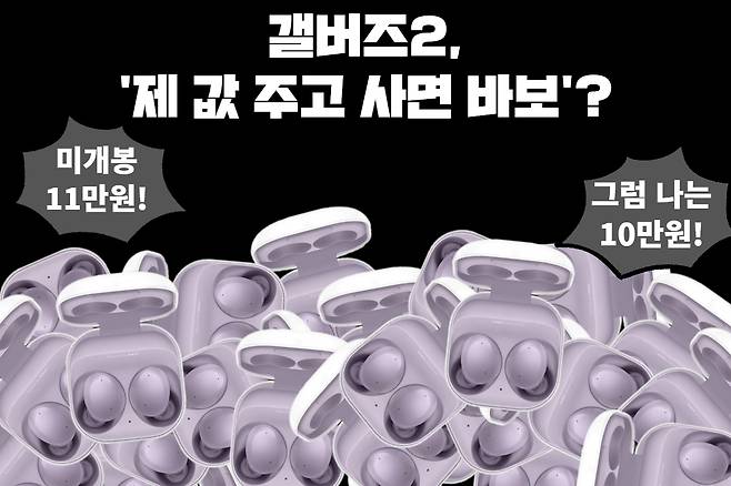 현재 당근마켓, 중고나라 등 중고거래 플랫폼에서는 미개봉 갤럭시 버즈2(이하 갤버즈2)가 10만~11만원 선에 올라와있다.