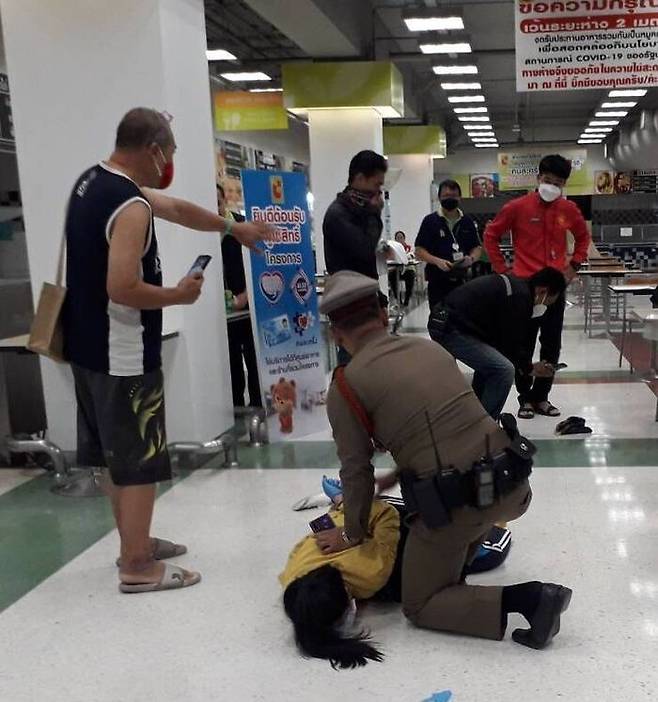 태국의 한 쇼핑몰에서 한 여성이 금 목걸이와 반지 등 1천300만원 어치를 강탈해 달아나다