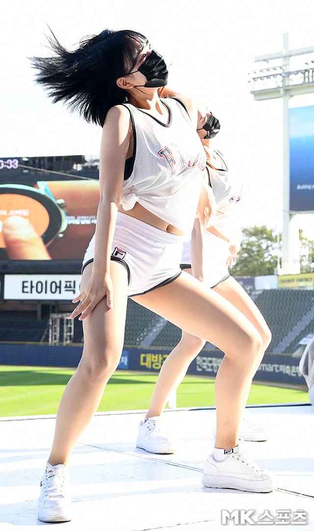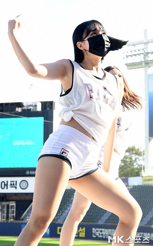 두산 치어리더 박성은이 공연을 펼치고 있다.