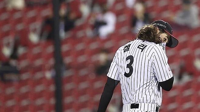 LG 켈리, 50경기 연속 5이닝 던지긴 했는데..한화전 6실점 부진