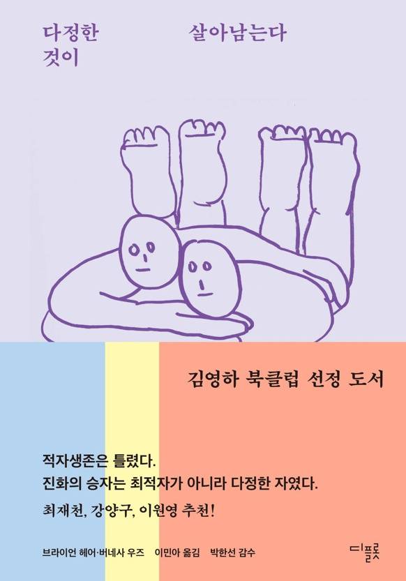 브라이언 헤어와 버네사 우즈는 <다정한 것이 살아남는다>(이민아 옮김, 박한선 감수)에서 우리가 다정함을 선택하는 방식으로 진화해 왔음을, 다정한 종이 더 생존에 우세했음을 이야기한다. 낯선 침팬지에게 폭력적으로 반응하는 침팬지는 서로를 공격해 해를 가하고 이는 죽임으로 이어지기도 하는 반면, 낯선 보노보에게 더 우호적으로 행동하는 보노보는 친화력을 이용해 번식력과 생존력을 높여왔음을 보여준다.