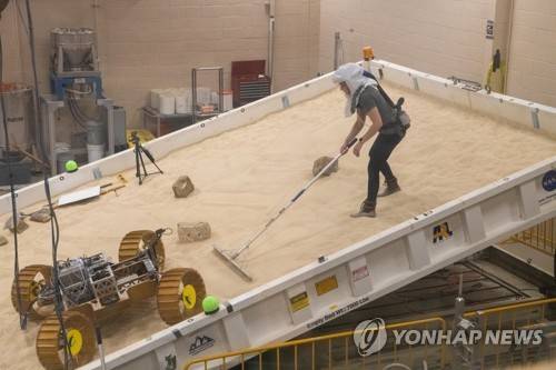 epa09478796 A handout picture made available by the National Aeronautics and Space Administration (NASA) shows an engineering model of the VIPER being tested in the Simulated Lunar Operations Laboratory at NASA's Glenn Research Center in Cleveland, Ohio, USA, 11 March 2021 (issued 21 September 2021). In picture, the large, adjustable soil bin contains lunar simulant and allows engineers to mimic the Moon's terrain. NASA's lunar rover Volatiles Investigating Polar Exploration Rover (or VIPER), which will explore the extreme environment of the Moon in search of water ice and other potential resources, is expected to land on the lunar south pole in late 2023 on a 100-day mission. EPA/NASA/GRC/BRIDGET CASWELL HANDOUT EDITORIAL USE ONLY/NO SALES