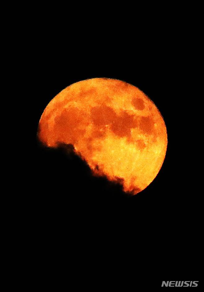 [서울=뉴시스] 김선웅 기자 = 추석인 21일 오후 서울 도심 위로 보름달이 떠오르고 있다. 2021.09.21. mangusta@newsis.com