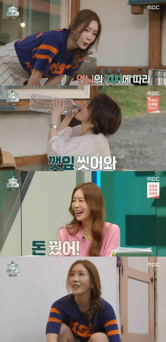 이어 '서로를 위해 밥을 차린 적이 있냐'는 질문에 김정은 '없다', 김정민은 '있다'. 김정민은 "타의에 의한 '라면 끓여와', '밥 좀 차려와' 지금은 안 그런다"라고 해 김정은을 당황하게 했다. 기억을 못하는 김정은의 모습에 딘딘은 "원래 가해자는 기억을 못 한다"라고 말해 폭소케 했다. 이날 여행 중 비가 오면서 파도가 심상치 않았고, 멍비치 방문이 무산됐다. 숙소로 도착한 김정은 자매.