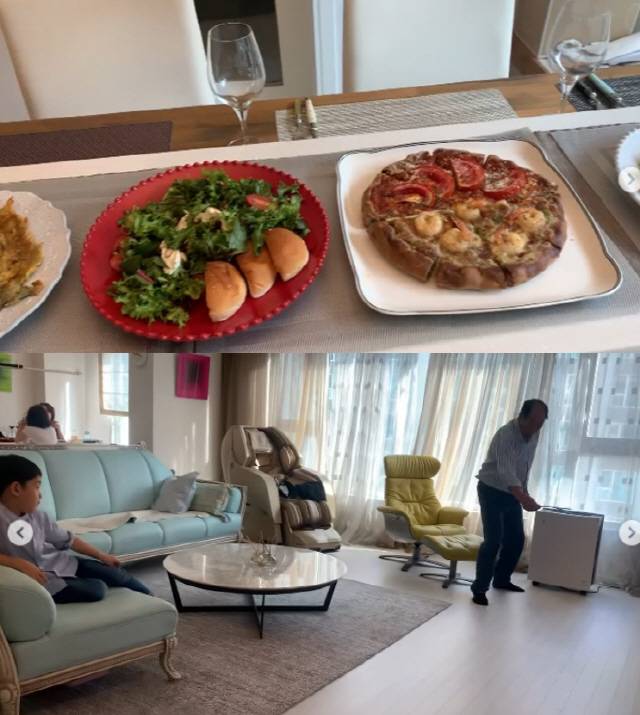 사진에는 넓은 집에서 상다리가 휘어질 듯 푸짐하게 상을 차려놓고 함께 하는 강성연과 가족들의 모습이 담겼다.