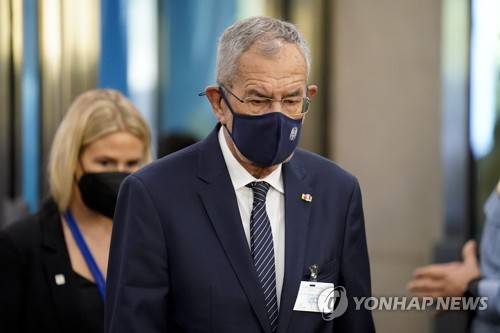 epa09479424 Pesident of Austria Alexander Van der Bellen arrives for the 76th Session of the UN General Assembly at United Nations headquarters in New York, USA, 21 September 2021. EPA/JOHN MINCHILLO / POOL