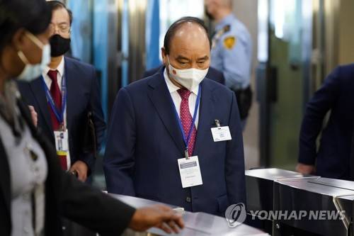 epa09479464 President of Vietnam Nguyen Xuan Phuc arrives for the 76th Session of the UN General Assembly at United Nations headquarters in New York, USA, 21 September 2021. EPA/JOHN MINCHILLO / POOL