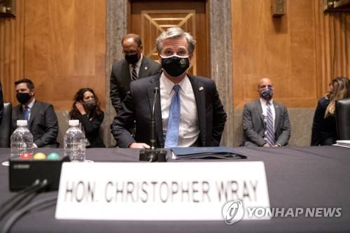 epa09479473 FBI Director Christopher Wray arrives for a a Senate Homeland Security and Governmental Affairs hearing to discuss security threats 20 years after the 9/11 terrorist attacks at the U.S. Capitol in Washington, D.C., USA, 21 September 2021. EPA/GREG NASH / POOL