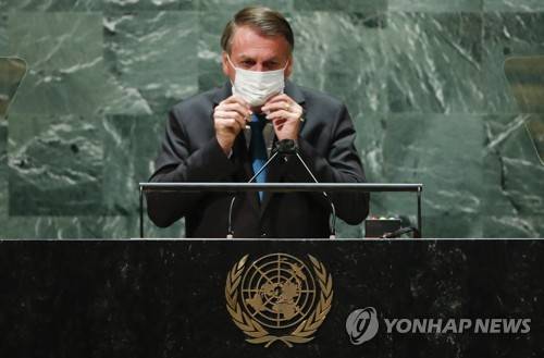 epa09479483 Brazil's President Jair Bolsonaro arrives to address the 76th Session of the UN General Assembly in New York City, USA, 21 September 2021. EPA/EDUARDO MUNOZ / POOL