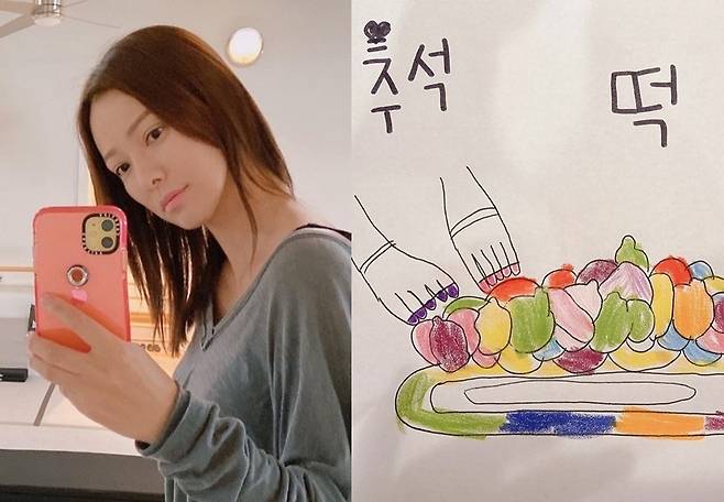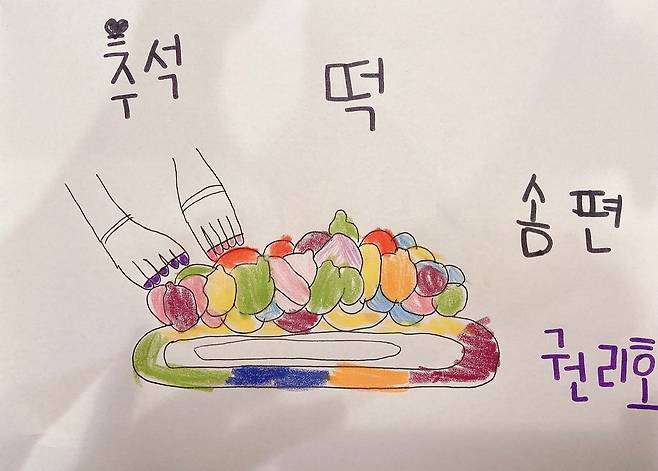 공개된 사진에는 손태영의 딸 리호 양이 직접 그리고 색칠한 송편 그림이 담겨있다.