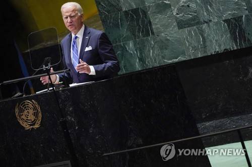 President Joe Biden delivers remarks to the 76th Session of the United Nations General Assembly, Tuesday, Sept. 21, 2021, in New York. (AP Photo/Evan Vucci)